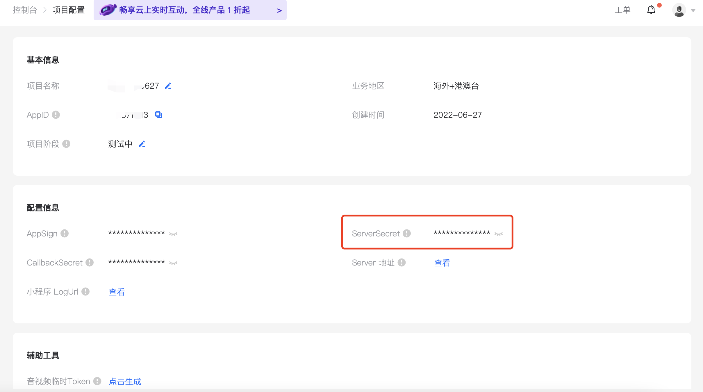 //请将 serverSecret 修改为你的 serverSecret,serverSecret 为 string