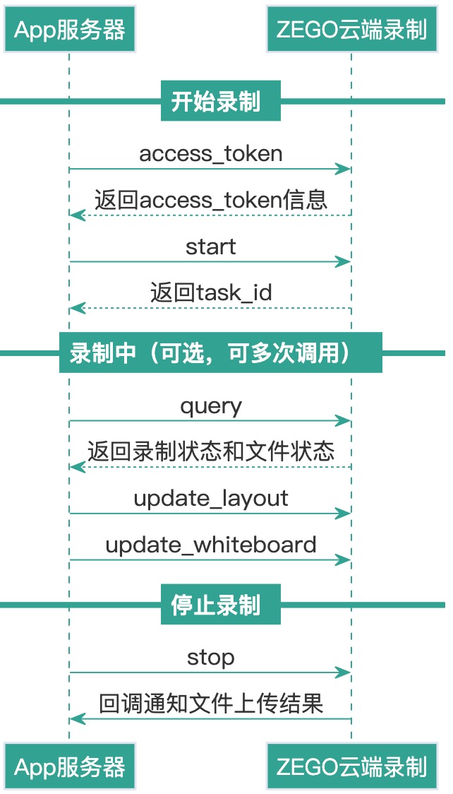 以下为实现云端录制需要调用的 API 时序图: