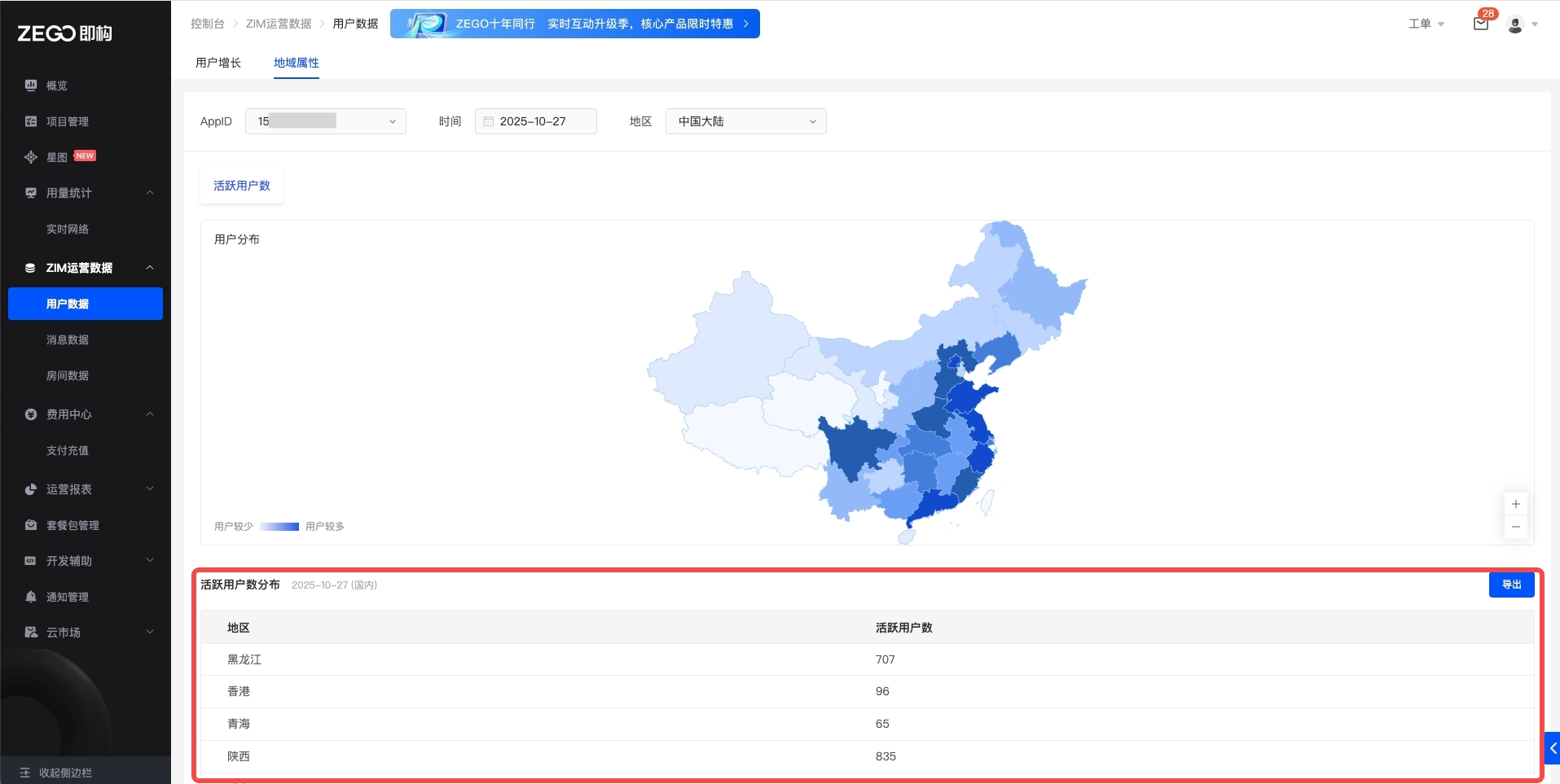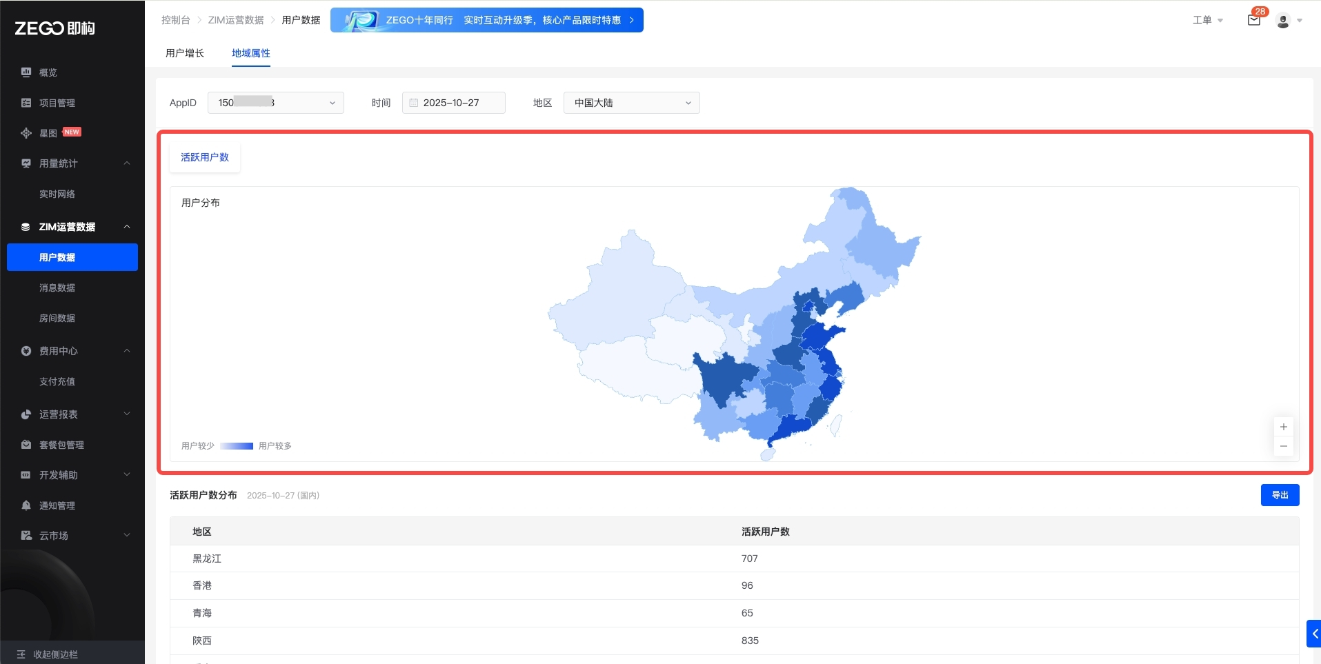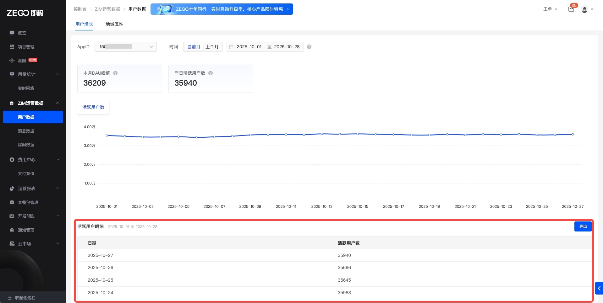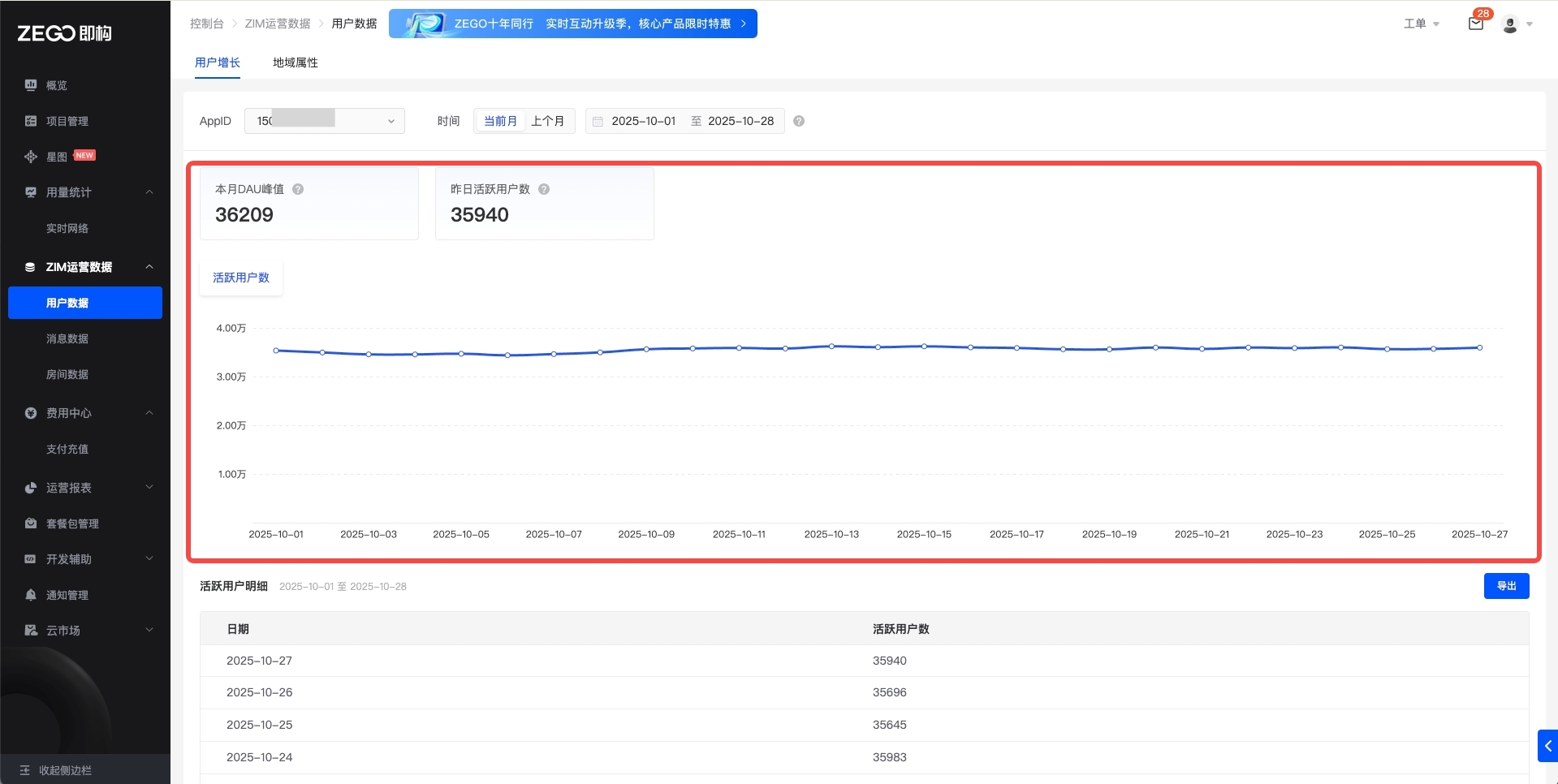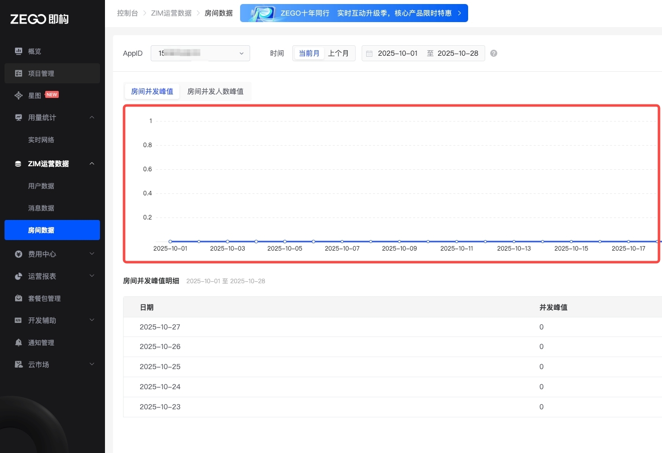 本文介绍如何在 ZEGO 控制台 查看各项 ZIM 运营数据。